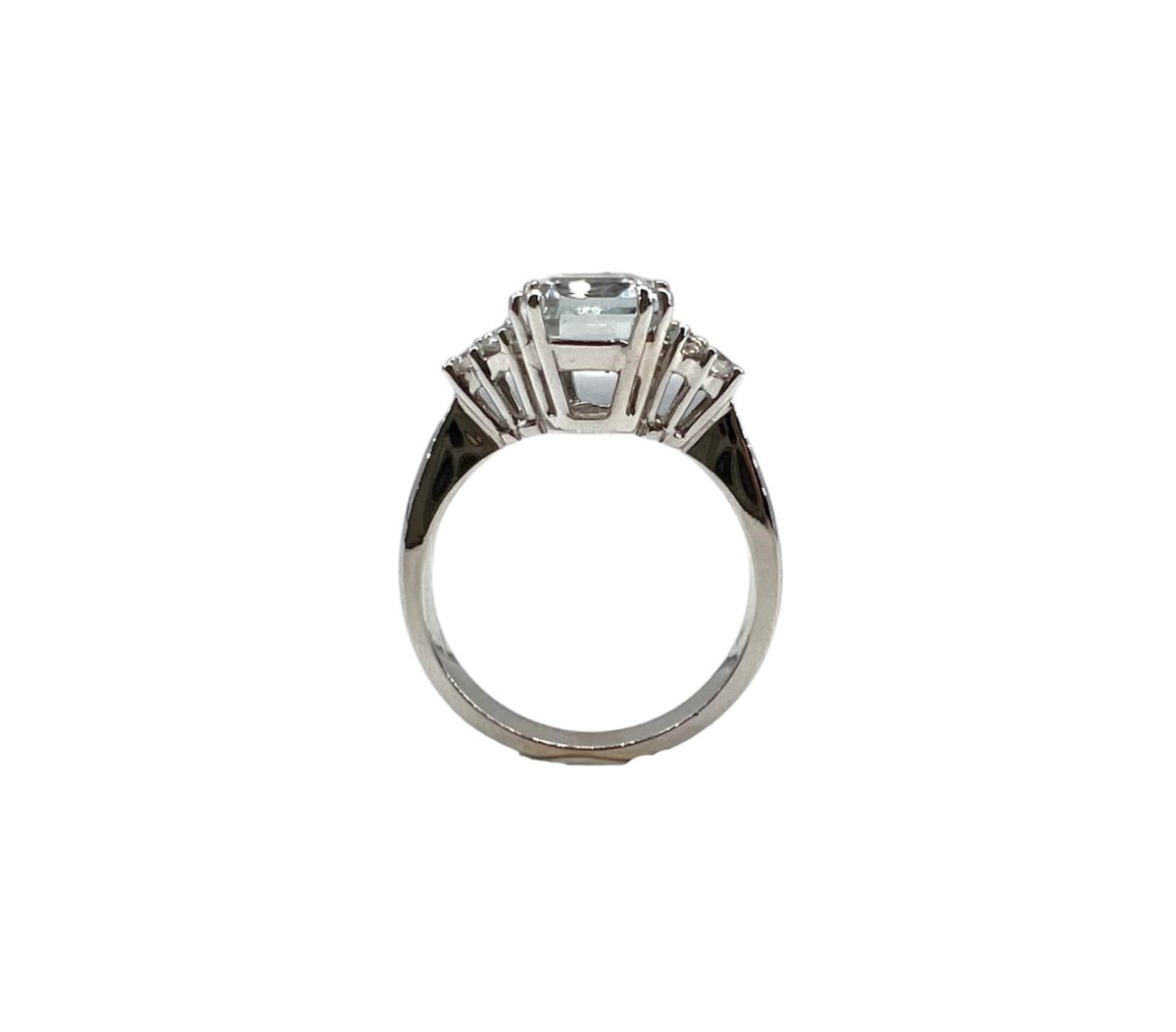 Anello con acquamarina e diamanti Cipolla dal 1950 Gioiellieri COLLEZIONE GEMME, lavorazione artigianale; Montatura in oro bianco 750% 18 kt diamanti 0,30 ct colore F Purezza VS1 Acquamarina naturale peso 2,08 ct taglio smeraldo.