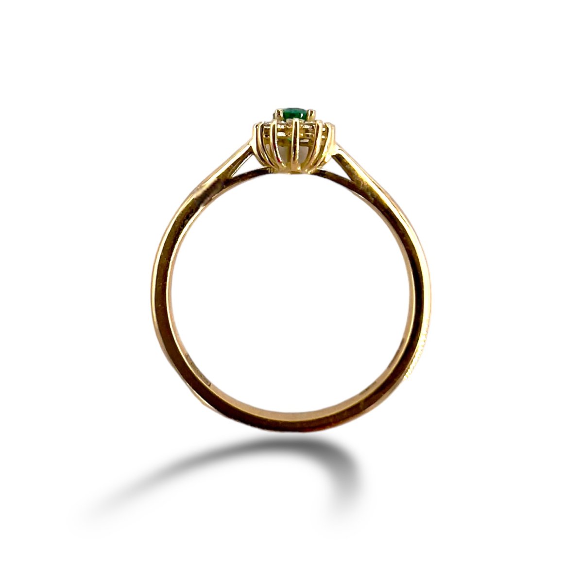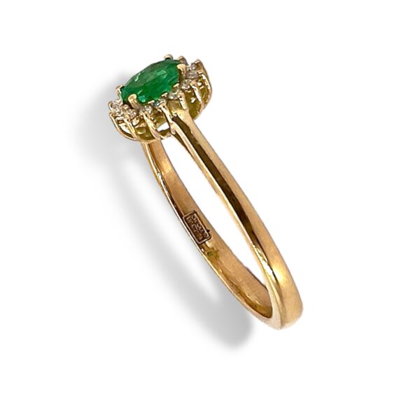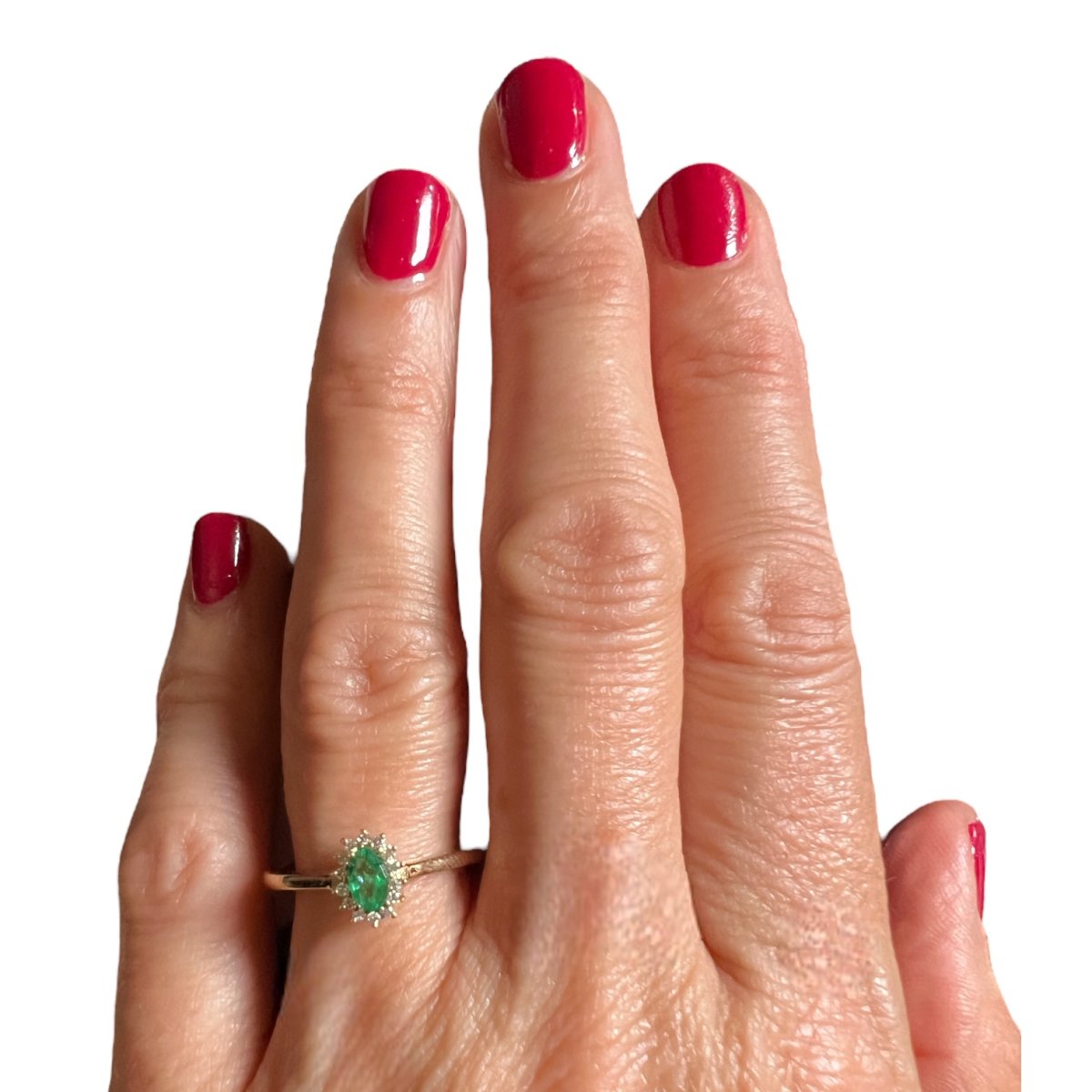Anello con smeraldo e diamanti BON TON in oro giallo 750% Smeraldo peso 0,20 Diamanti peso 0,07 Ct colore F purezza VS1