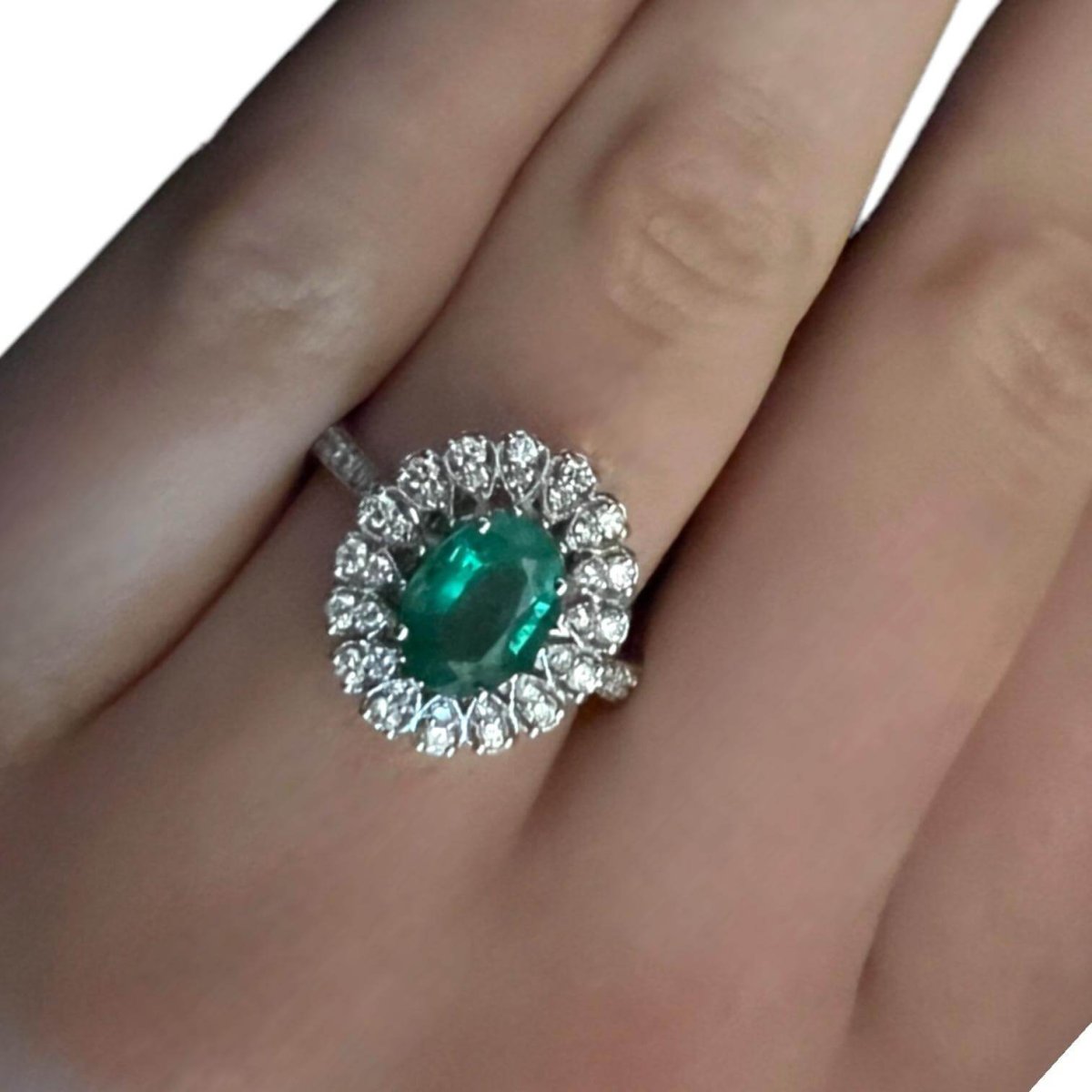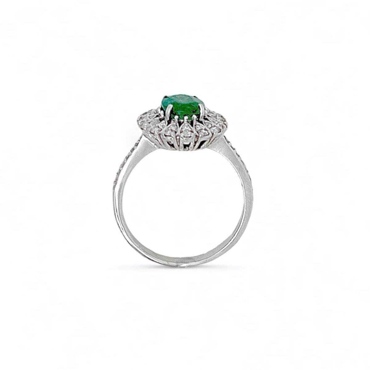 La montatura in oro bianco 18 Kt 750% dona all’anello una cornice elegante, evidenziando la bellezza senza tempo dello smeraldo colombiano da 1,30 Ct, con un taglio ovale che esalta la sua luminosità naturale. Questa pietra preziosa, scelta con cura, aggiunge un tocco di raffinatezza e unicità al gioiello.