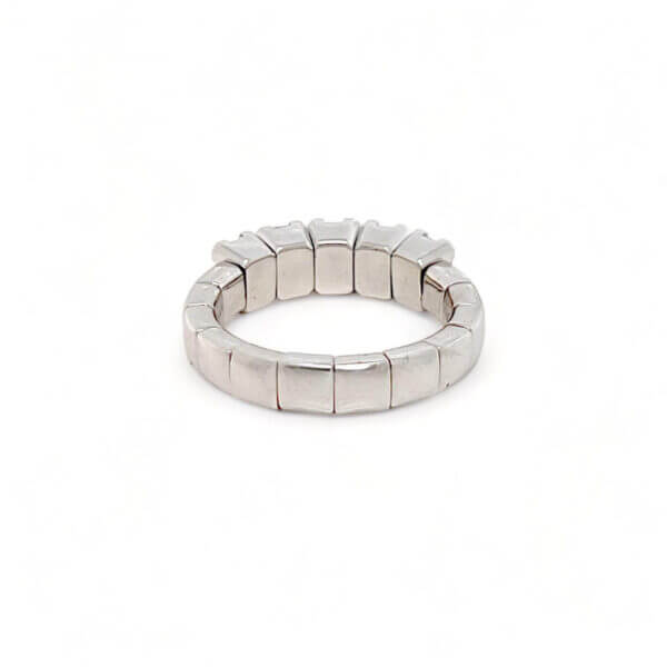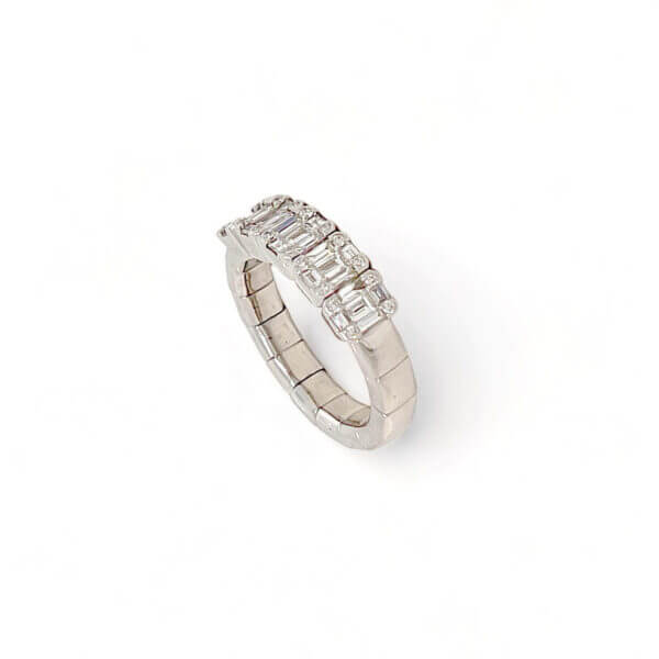 Indossare questo anello non è solo indossare un gioiello, ma è sperimentare la fusione di design raffinato e materiali pregiati. L’Anello Elastico Oro Bianco e Diamanti diventa così una dichiarazione di stile intramontabile, ideale per la donna che ricerca la bellezza senza tempo nella gioielleria di lusso. Con Cipolla dal 1950 Gioiellieri, ogni creazione è un’ode all’artigianato italiano e all’eleganza senza tempo.