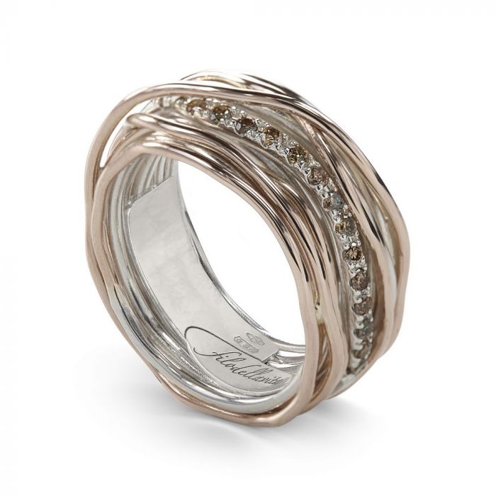 Anello Filodellavita Classic Collection, 13 Fili in Oro Rosa 9kt, Argento 925 arricchito con Palladio o Platino e 16 Diamanti Brown 0.21 ct