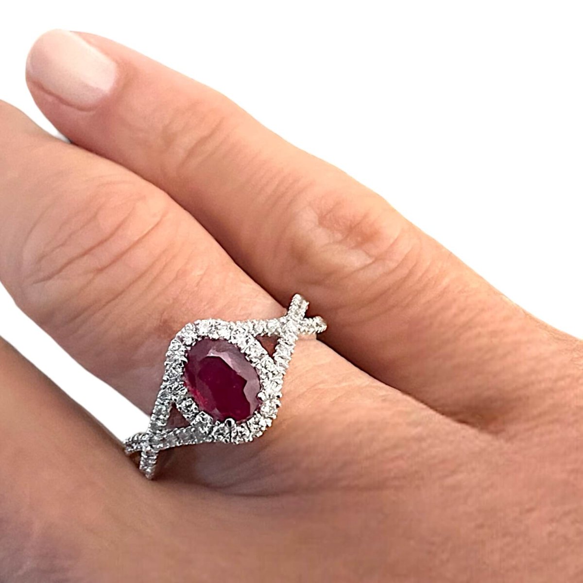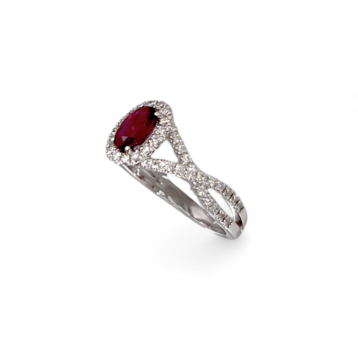 Anello rubino oro bianco 750% CIPOLLA DAL 1950 GIOIELLI COLLEZIONE BELLE EPOQUE, diamanti 0,34 ct colore F purezza vs1 rubino naturale 0,85 ct