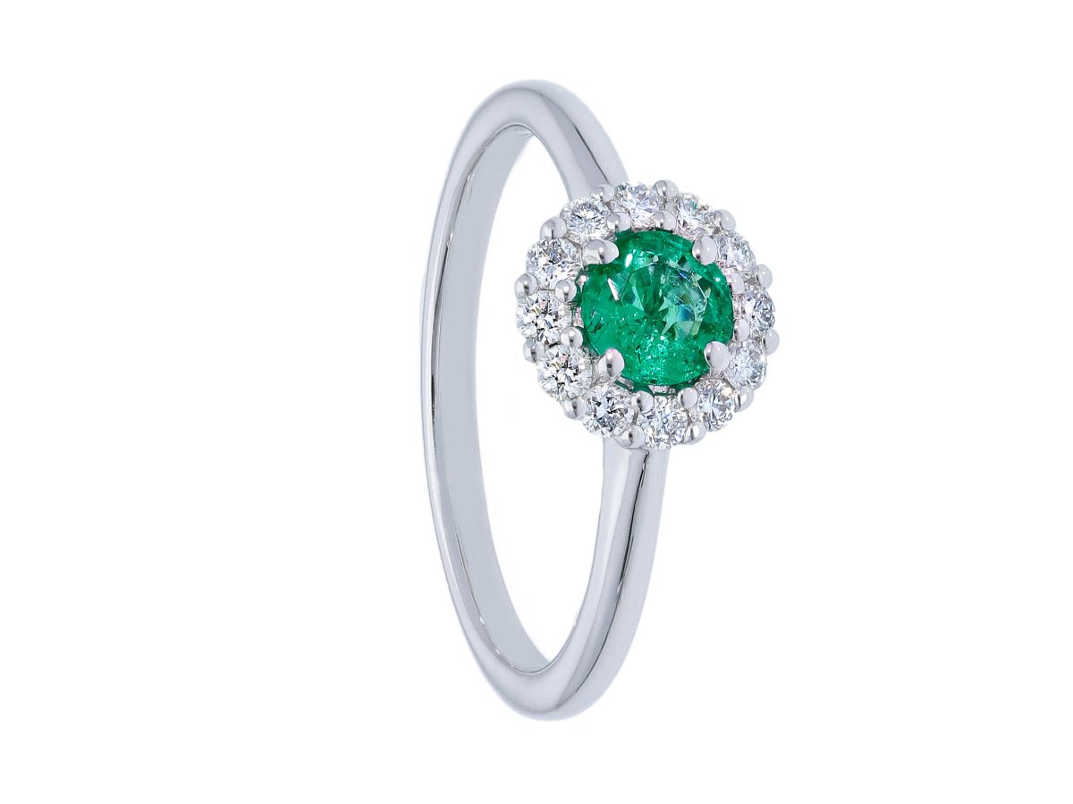 Anello con smeraldo e diamanti Cipolla dal 1950 Gioielli COLLEZIONE BELLE EPOQUE in oro bianco 750% Smeraldo peso 0,45 Diamanti peso 0,24 Ct colore F purezza VS2