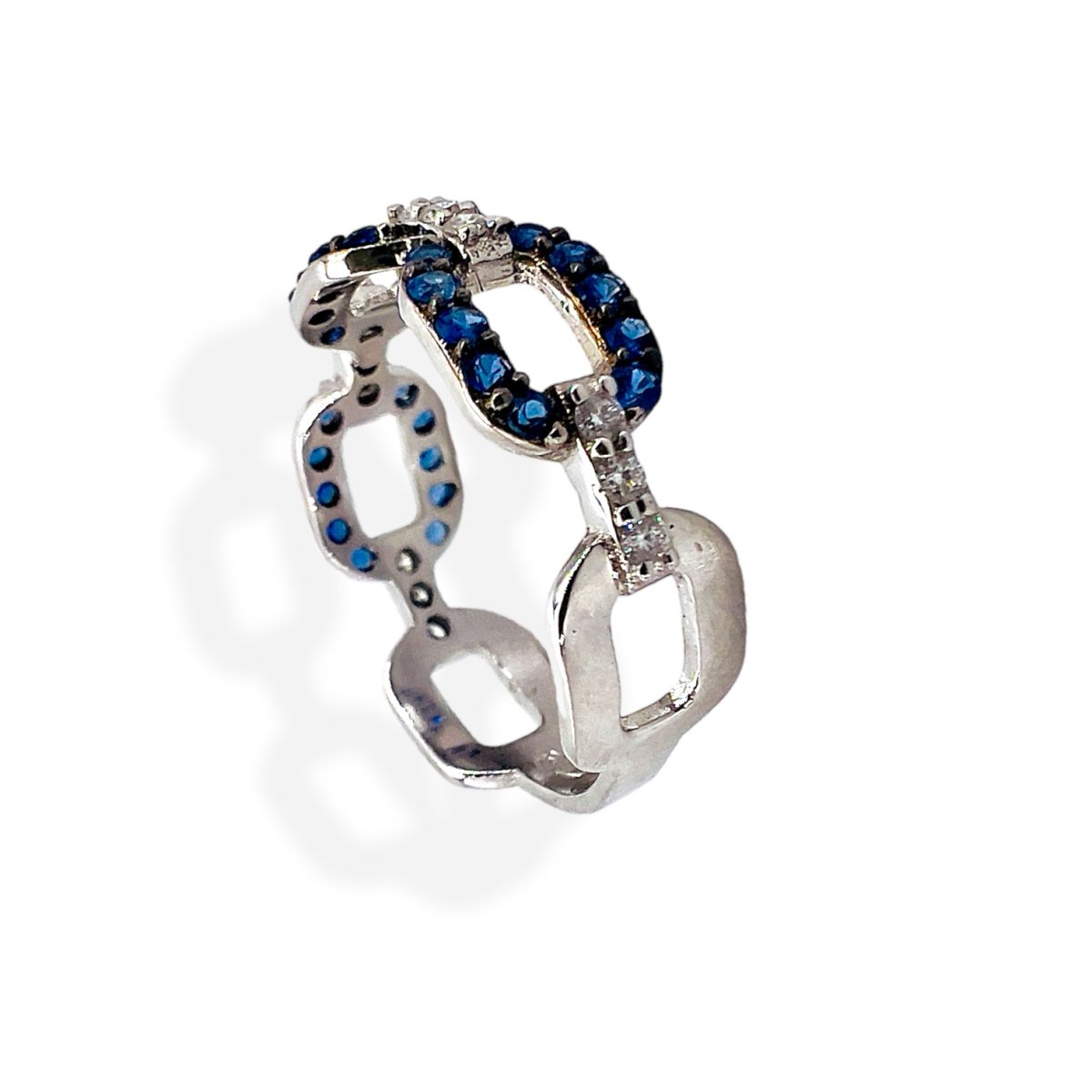 Anello con zaffiri e diamanti Cipolla dal 1950 Gioiellieri COLLEZIONE GEMME; gioiello artigianale, Montatura in oro bianco 750% 18 kt, Zaffiri taglio rotondo peso 0,50 Diamanti taglio brillante peso 0,15 Ct colore F purezza VS1