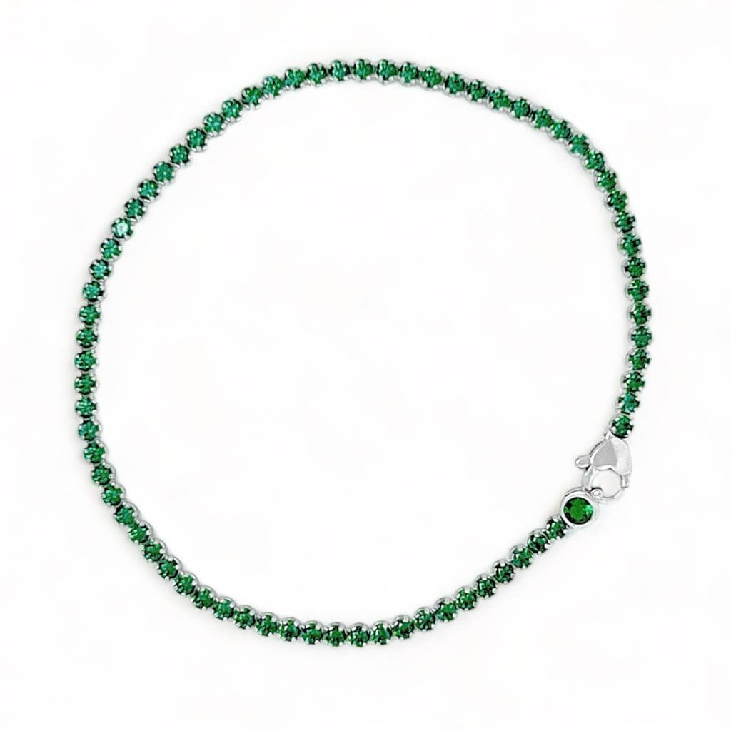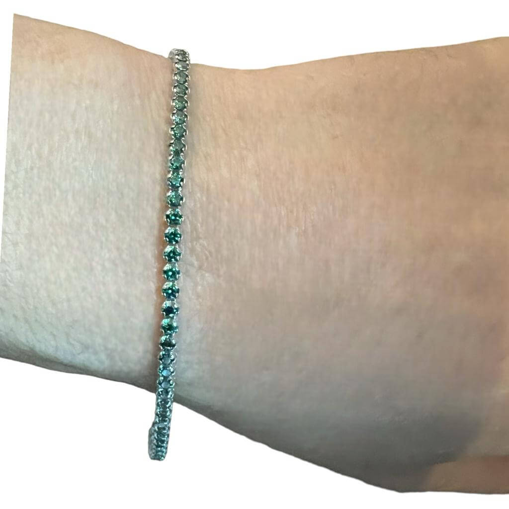 Bracciale tennis in oro bianco 750 18Kt e zirconi verdi Cipolla dal 1950 gioielli, lavorazione artigianale peso 3,83 grammi.