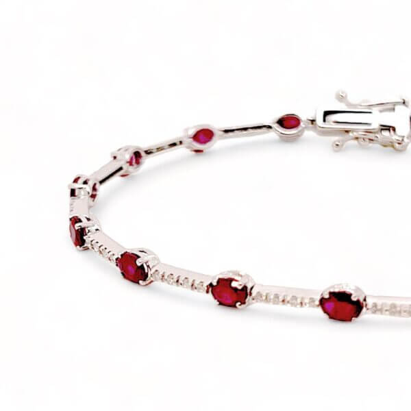 Bracciale tennis oro bianco 750% GEMME rubini 3,42 ct diamanti 0,40 ct colore F/vs1 CIPOLLA DAL 1950 GIOIELLI ART. 114316