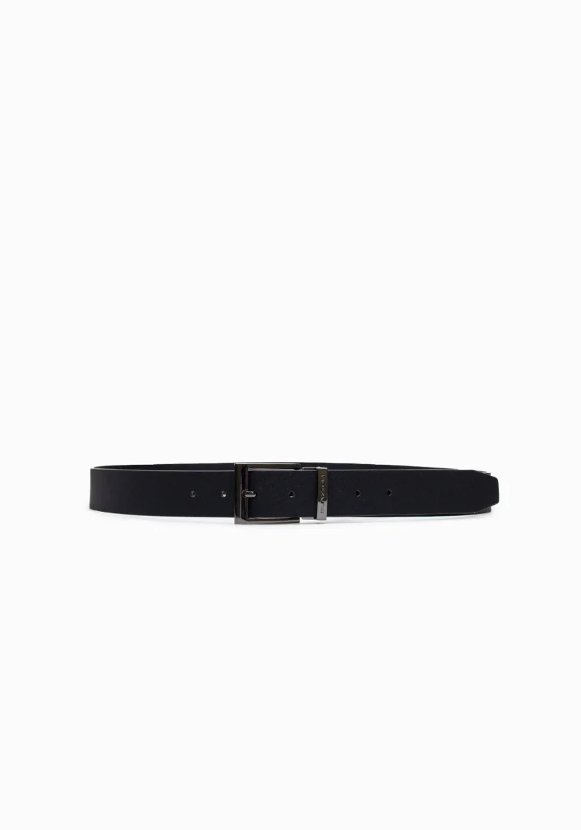 Cintura effetto pelle con texture saffiano. Fusto bombato e fibbia metallica. Misure: 120 cm (fibbia compresa) x 3,5 cm.