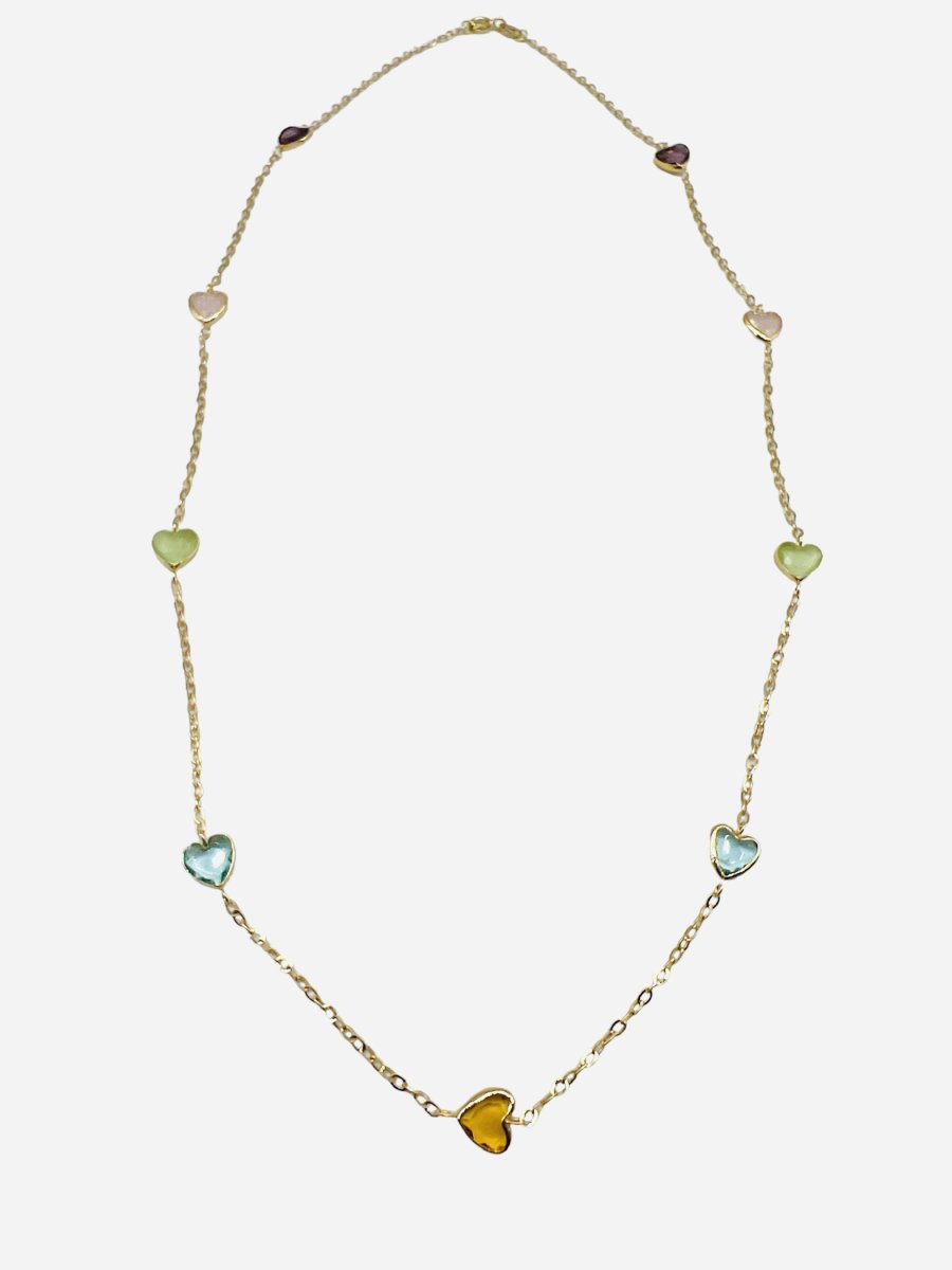 Collana girocollo Cipolla dal 1950 Gioiellieri maglia catena in oro giallo 750% 18 kt,peso grammi 2,50 con ametista naturale,topazio naturale,quarzi naturali taglio cuore