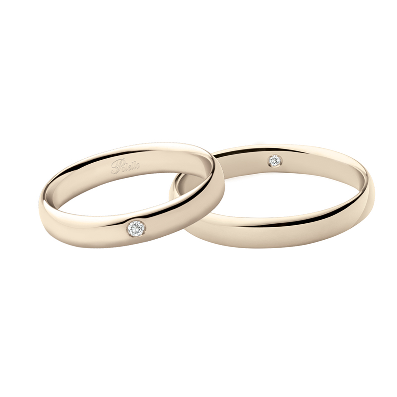 Fedi nuziali Polello collezione A Noi in oro champagne 18kt proposte con diamanti ct. 0.02 nella versione femminile e con diamanti ct. 0.01 nella versione maschile.