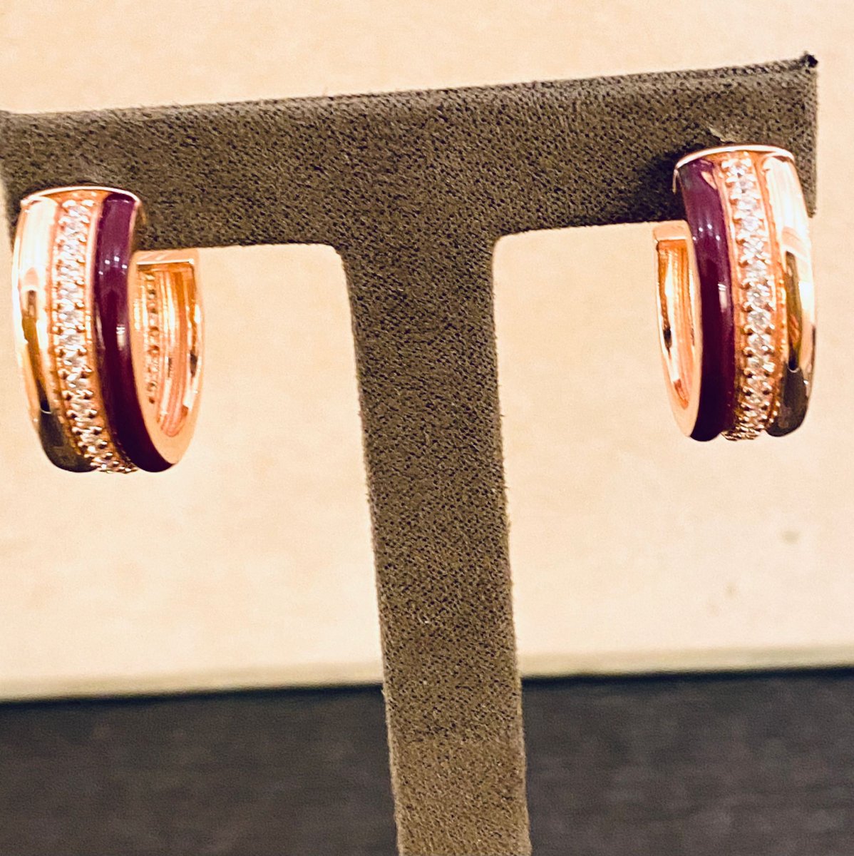 LABRIORO orecchini argento 925% rose gold smalto bordeaux rosa e cristalli