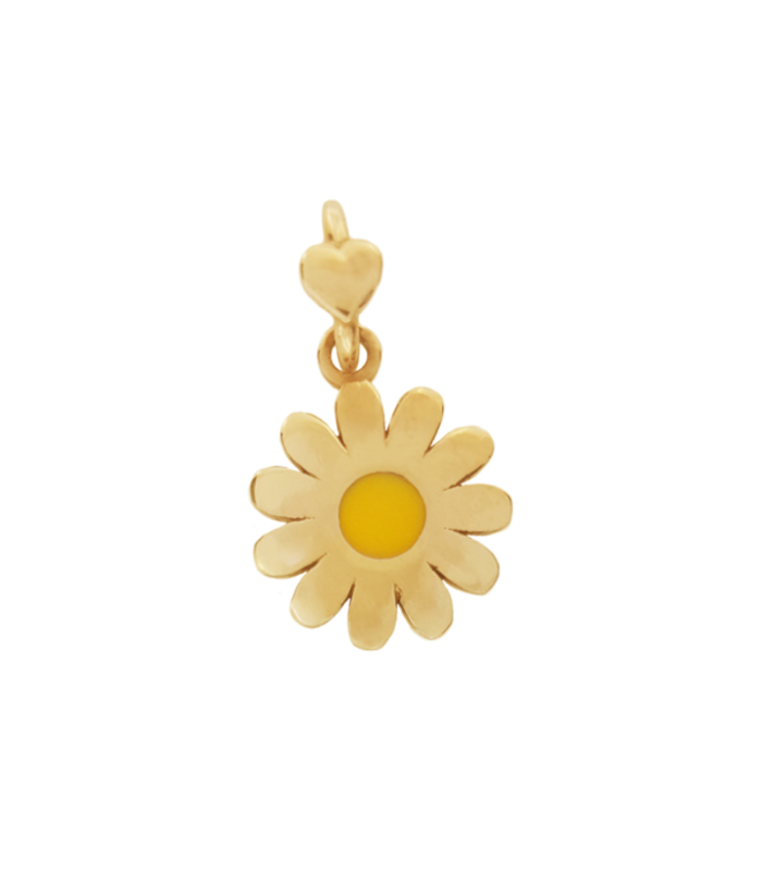 Il ciondolo di Primavera in argento 925°/°° con dettagli smaltati in giallo e contromaglia cuoricino in oro 9kt.
