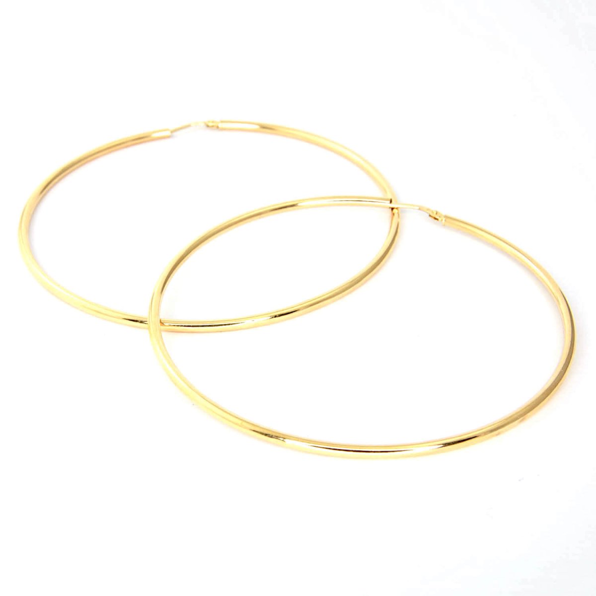 Orecchini a cerchio in oro giallo 750% 18kt, diametro 5,3 cm circa, canna tonda liscia, peso 4,66 grammi circa, lavorazione artigianale Cipolla dal 1950 gioielli