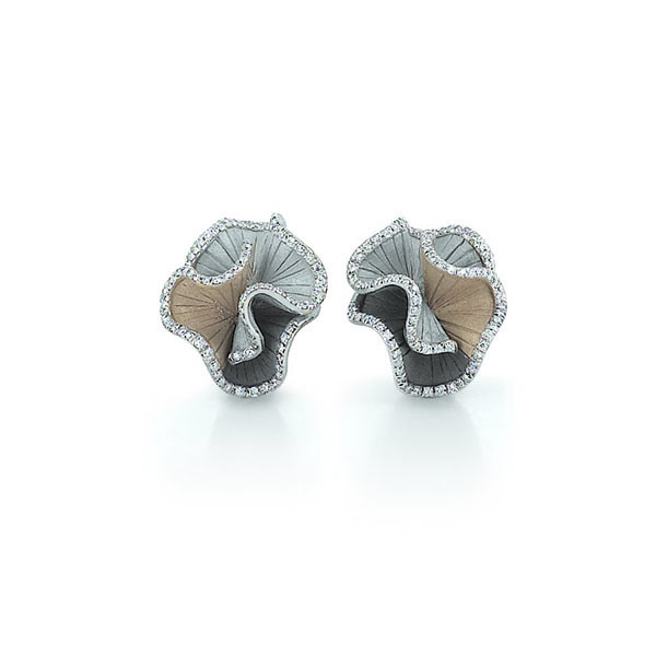 Orecchini collezione Sultana 1 in oro bianco, oro nero ed oro naturale 750‰ con Diamanti Naturali 0,48 ct. sui bordi.