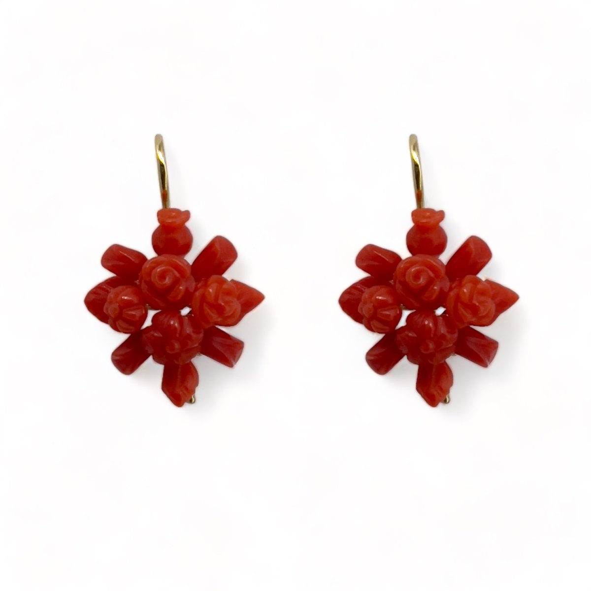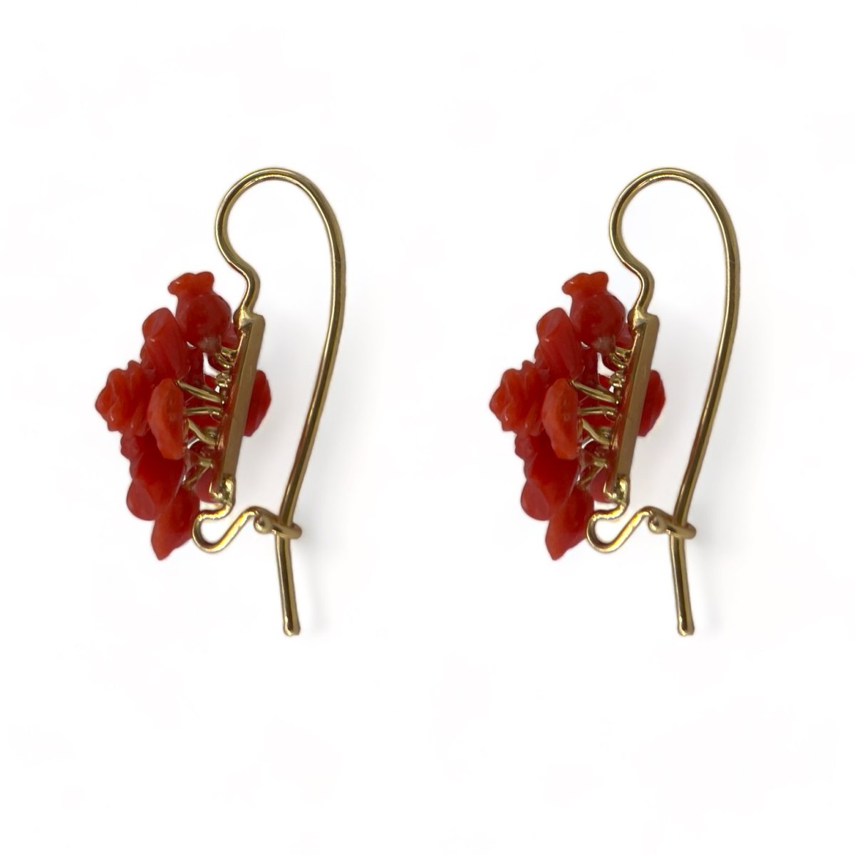 Orecchini corallo oro 375% 9kt corallo mare mediterraneo lavorazione artigianale CIPOLLA DAL 1950 GIOIELLI.