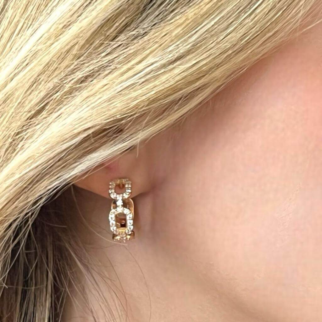 La montatura in oro rosa 750% 18kt, distintiva per la sua sofisticata tonalità, abbraccia delicatamente il cerchio degli orecchini, creando un connubio armonioso tra design moderno e classicità intramontabile. I diamanti incastonati, con una caratura complessiva di 1,10 Ct, esibiscono un colore F e una purezza VS2, assicurando una luminosità brillante e uno scintillio avvolgente.
