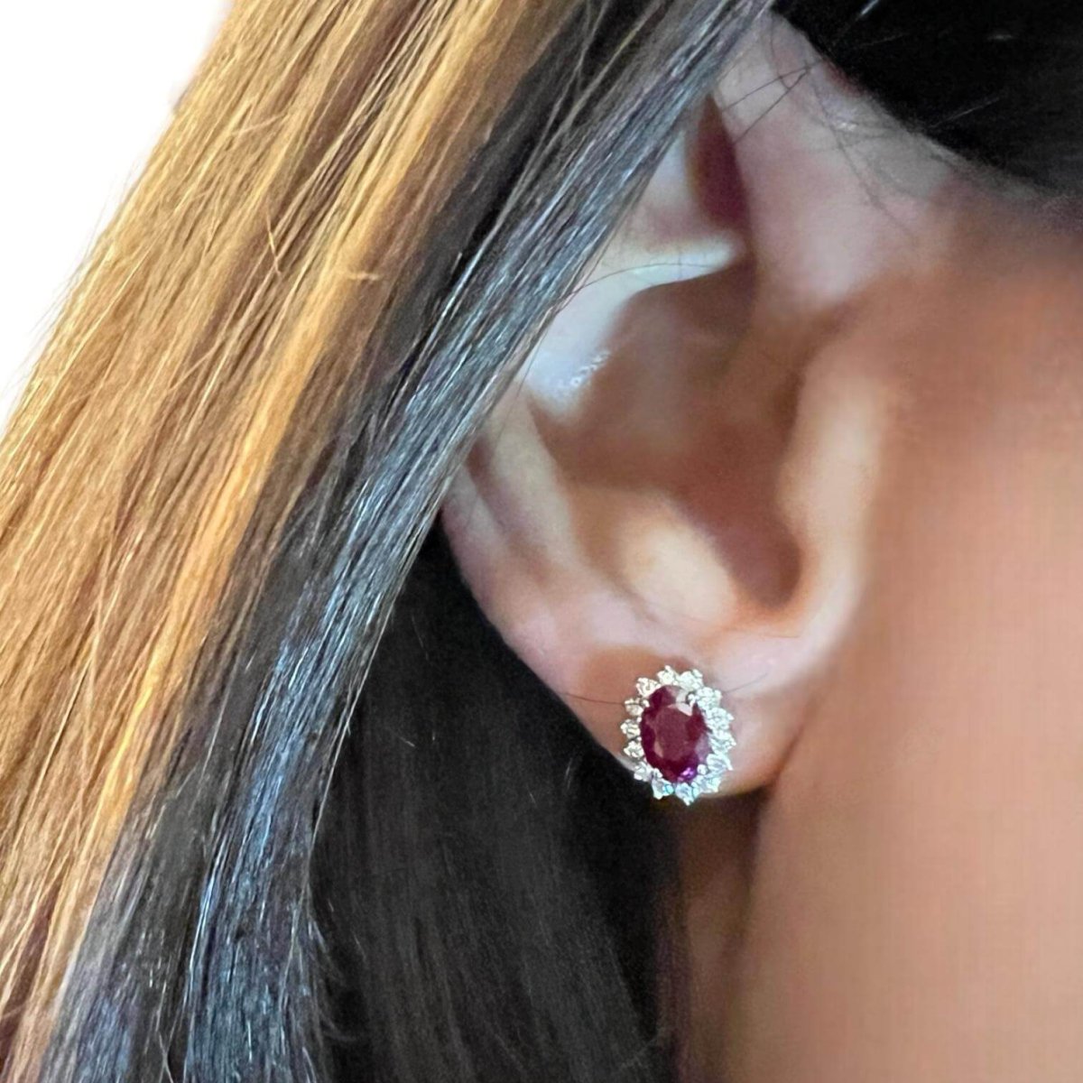Orecchini in oro bianco 750% 18 kt, lavorazione artigianale Cipolla dal 1950 gioielli COLLEZIONE BON TON, rubini provenienza India caratura 1,24 ct taglio ovale, diamanti ct 0,25 taglio brillante purezza VS1 colore F