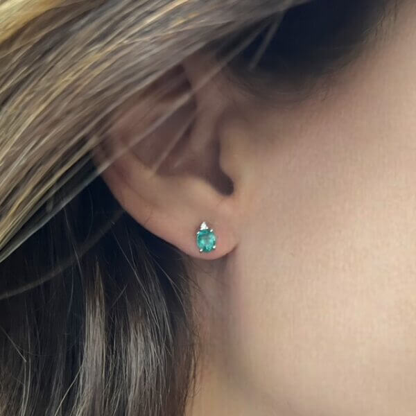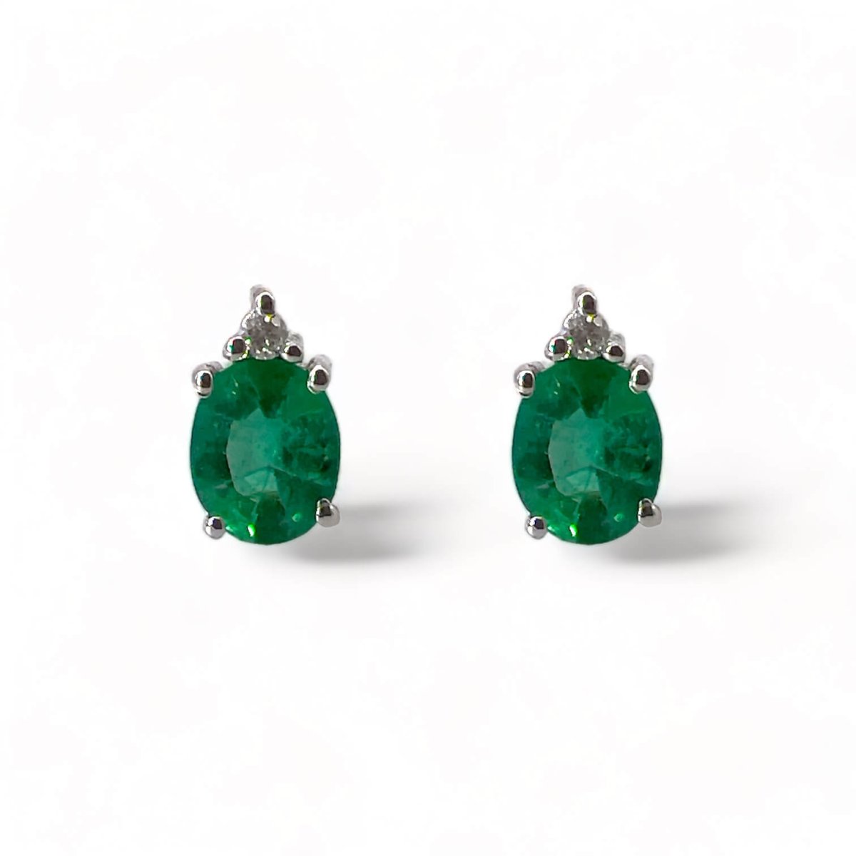 Orecchini smeraldo e diamanti in oro bianco 750%, Diamanti 0,03 ct colore F purezza VS2 Smeraldi caratura 0,62 ct