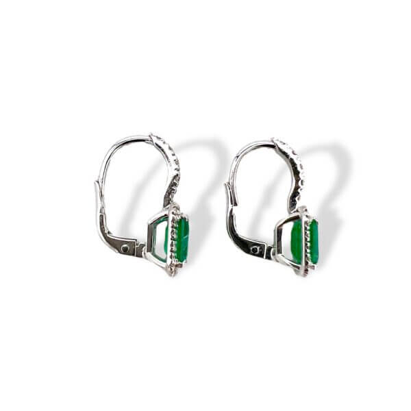 Orecchini smeraldi oro bianco 750% BELLE EPOQUE diamanti 0,46 ct colore F purezza VS1, Smeraldi naturali 2,01 ct CIPOLLA DAL 1950 GIOIELLI ART. OR454