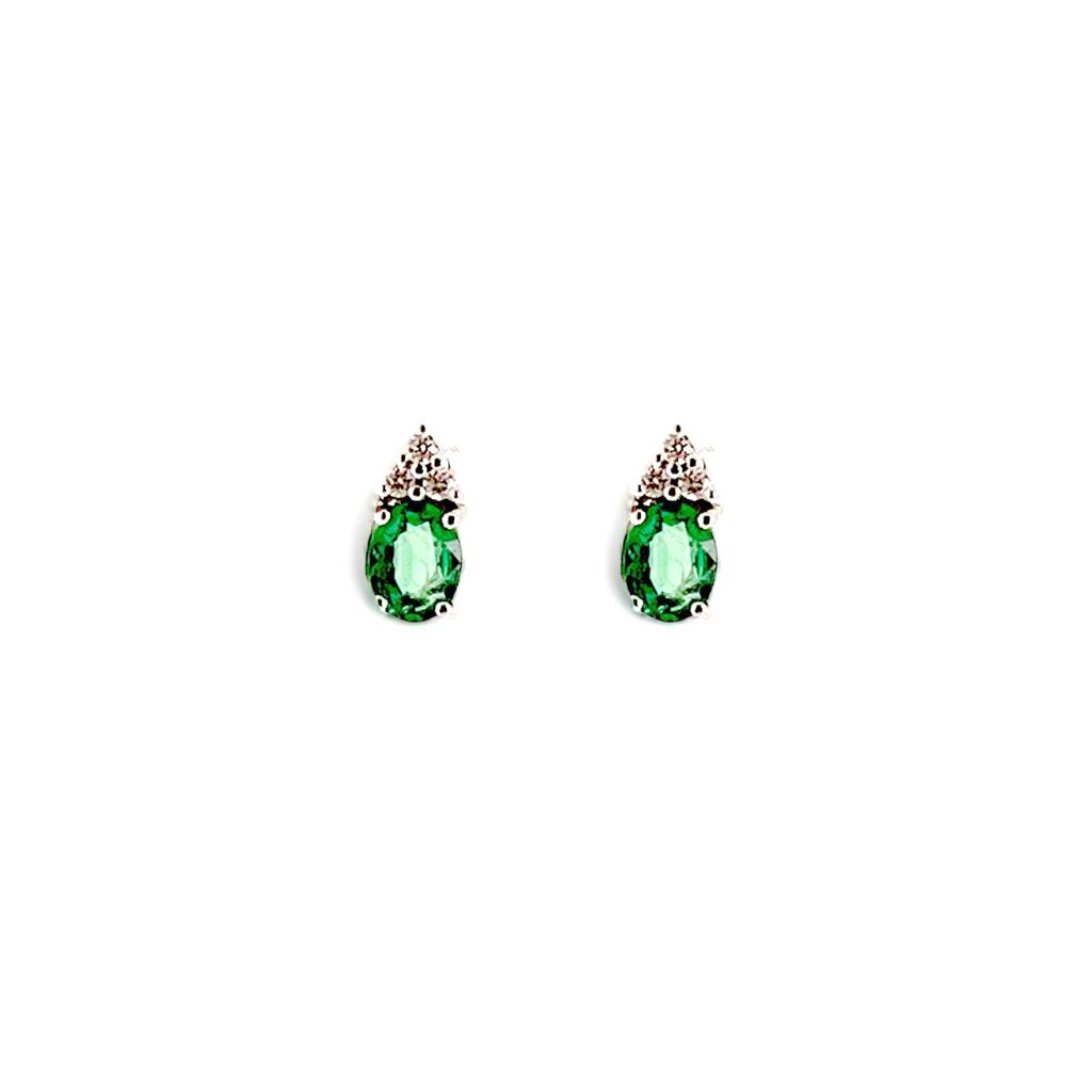 Orecchini smeraldo e diamanti in oro bianco 750% GEMME Diamanti 0,06 ct colore F purezza VS2, Smeraldi caratura 0,51 ct taglio ovale