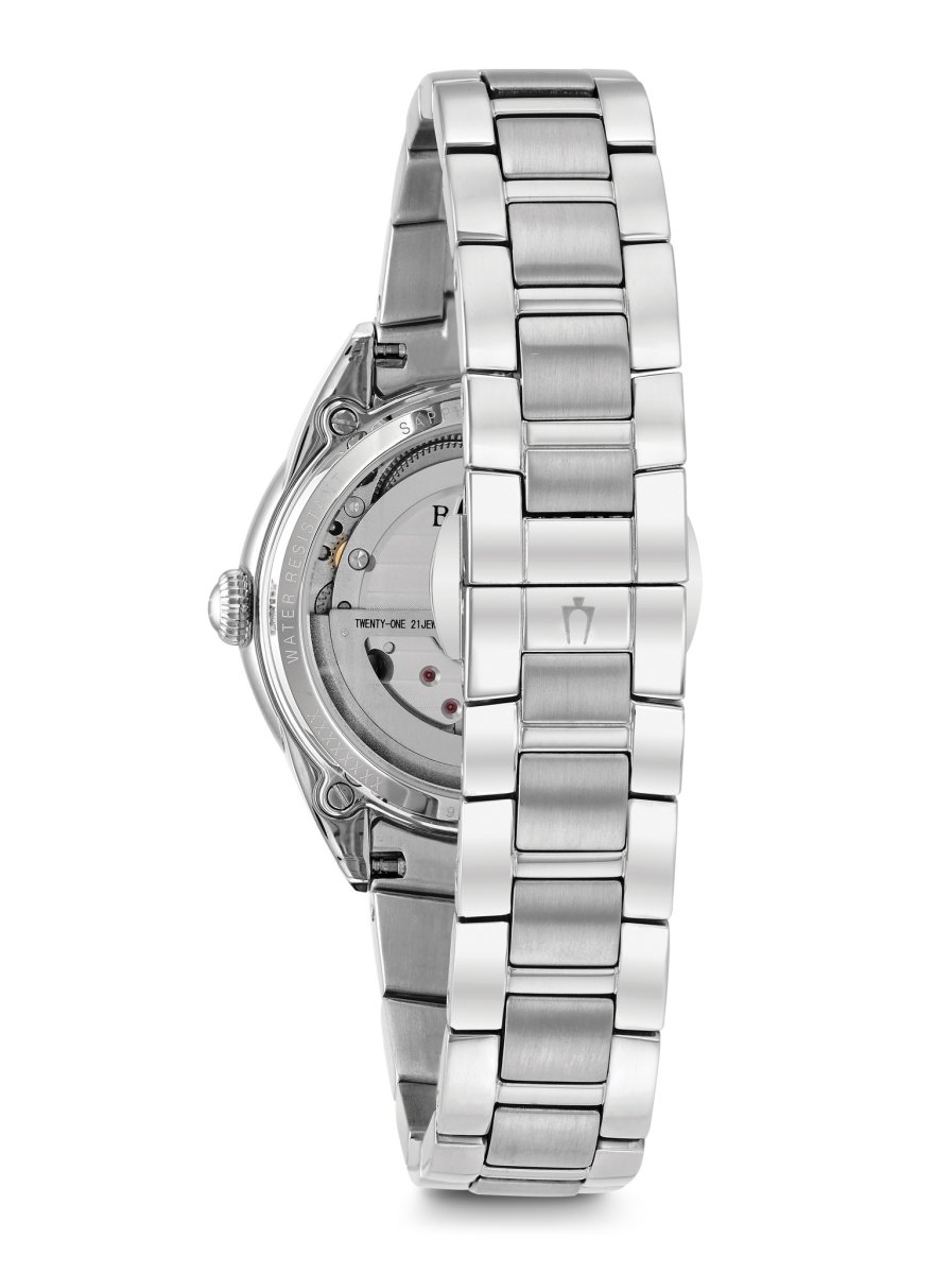 Esplora l’arte dell’orologeria con l’Orologio Bulova meccanico 96P181, una gemma di eleganza e raffinatezza appartenente alla prestigiosa Collezione Sutton. Questo orologio da donna è un inno all’estetica, con una cassa in acciaio da 34 mm che cattura lo sguardo per la sua lucentezza senza tempo.