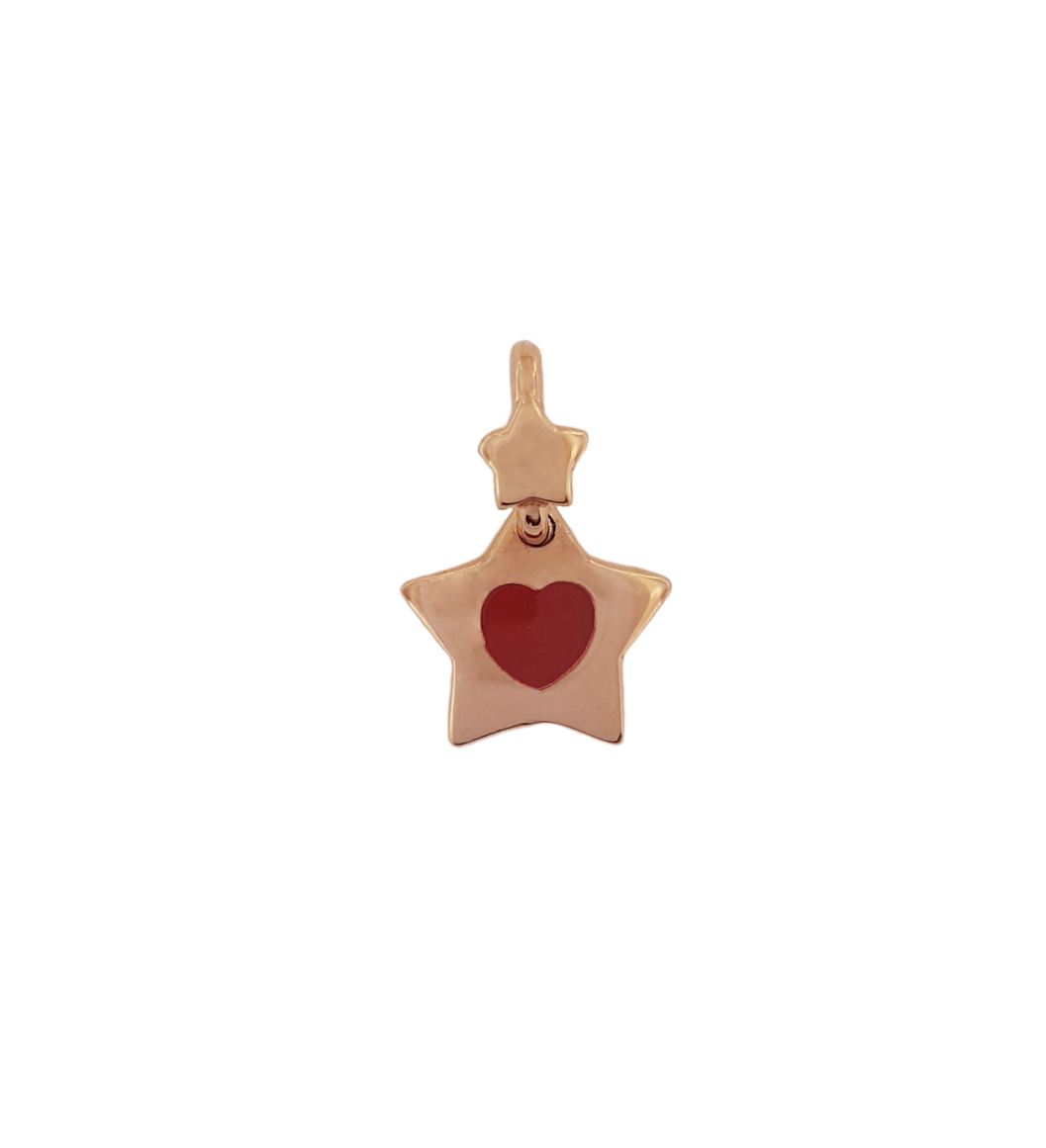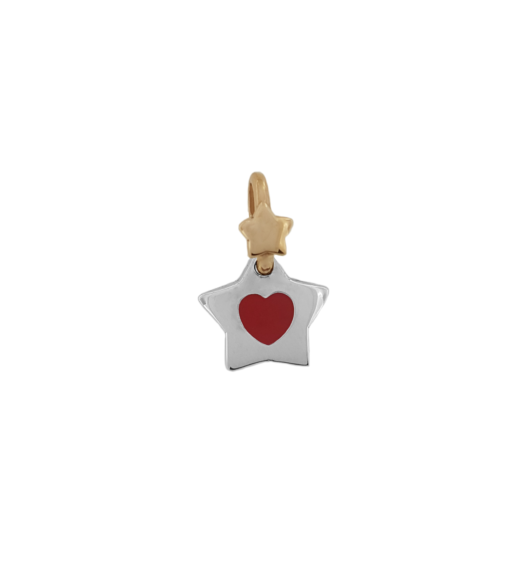 Disponibile in oro giallo, oro rosa 9 kt, argento 925°/°° con contramaglia in oro, e cuoricino smaltato rosso.